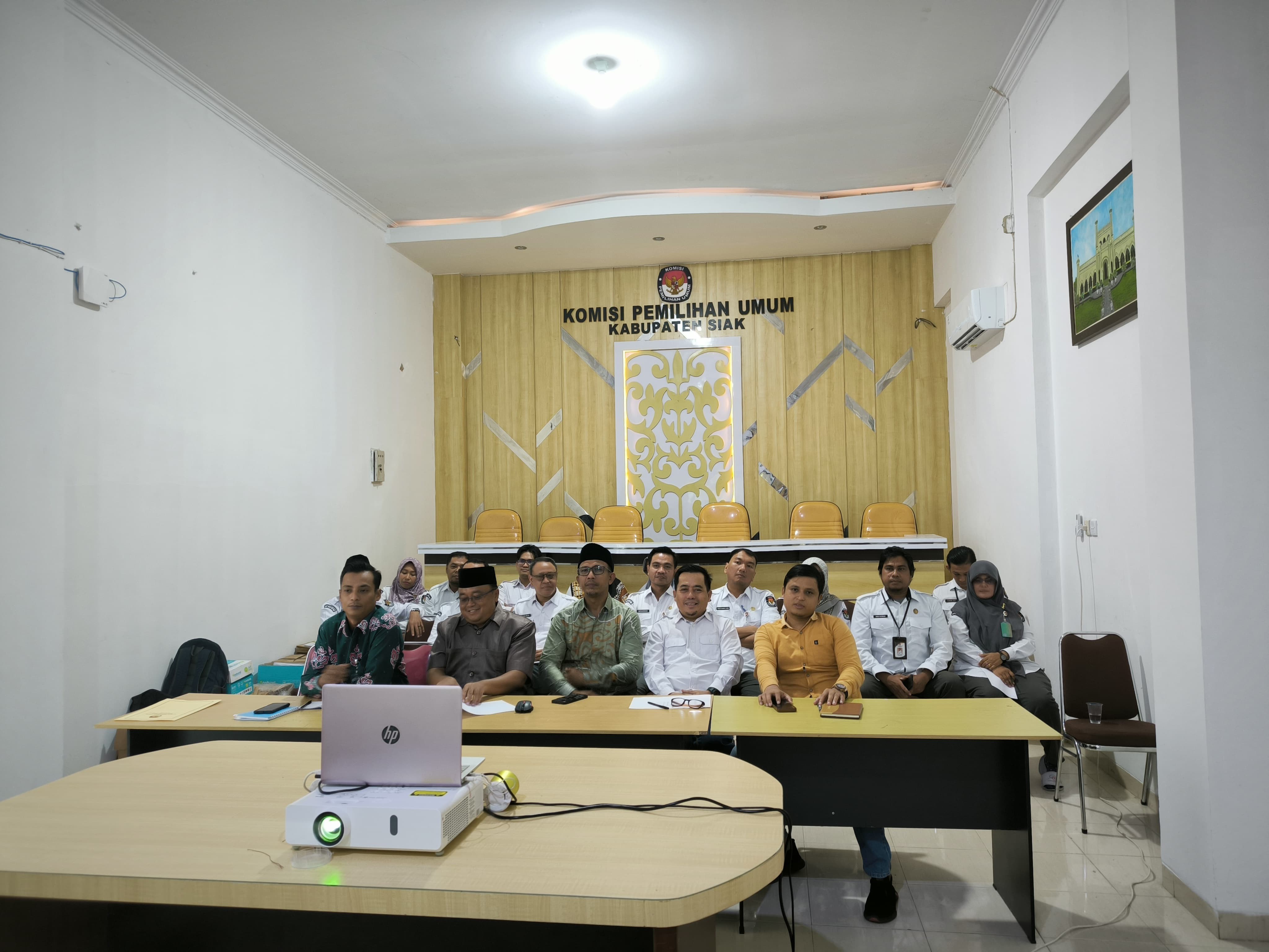Senin (21/4/2024) KPU Provinsi Riau mengadakan kegiatan Penguatan Kelembagaan untuk kesiapan pelaksanaan Pilkada Serentak Tahun 2024. Dalam kegiatan dilakukan melalui zoom meeting ini diikuti oleh seluruh Komisioner dan Sekretariat KPU Kabupaten/Kota se- Provinsi Riau. Sementara dari KPU Kabupaten Siak diikuti oleh Ketua dan Anggota KPU Kabupaten Siak dan Sekretariat dihadiri oleh para Kasubbag dan staf bertempat di aula KPU Kabupaten Siak.