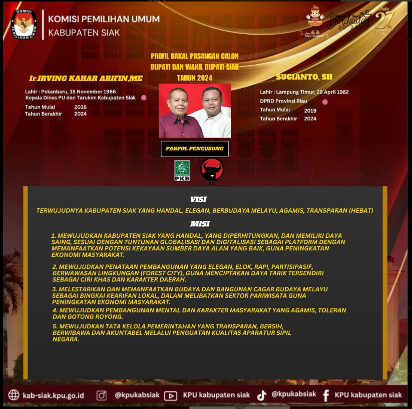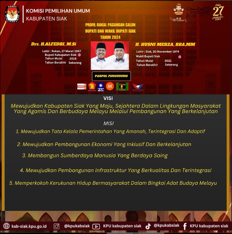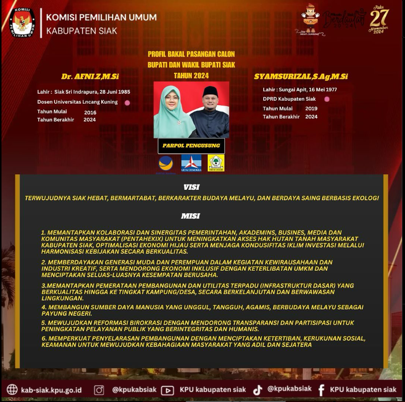 VISI MISI BAKAL CALON BUPATI DAN WAKIL BUPATI KABUPATEN SIAK TAHUN 2024