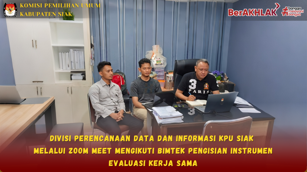 Dalam rangka menindaklanjuti Surat Sekretaris Jenderal Komisi Pemilihan Umum Republik Indonesia Nomor 3673/HK.05.1-SD/01/2025 tanggal 14 Oktober 2025 perihal Pengisian Instrumen Evaluasi Kerja Sama, Divisi Perencanaan, Data, dan Informasi (Rendatin) KPU Kabupaten Siak mengikuti kegiatan Bimbingan Teknis (Bimtek) Pengisian Instrumen Evaluasi Kerja Sama yang diselenggarakan secara daring oleh Biro Perencanaan dan Organisasi KPU RI.