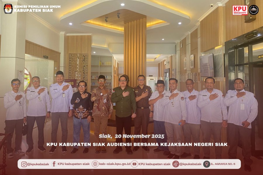 Kamis 20 November 2025 jajaran KPU Kabupaten Siak berkunjung sekaligus melakukan audiensi ke kantor Kejaksaan Negeri Siak. Rombongan diterima langsung oleh Kepala Kejaksaan Negeri Siak.