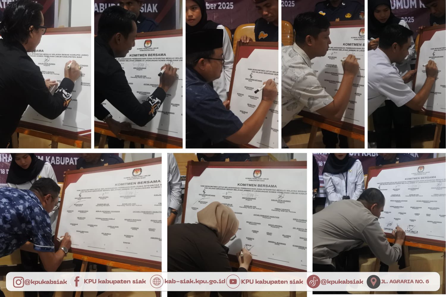 rta Berlian Littaqua, Dedi Kurniawan, Dailin Fajri Sormin, dan Moh. Royani selaku Anggota KPU Kabupaten Siak. Penandatanganan tersebut juga diikuti oleh seluruh Aparatur Sipil Negara (ASN) di lingkungan Sekretariat KPU Kabupaten Siak.