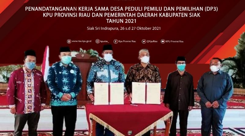 Bupati Kabupaten Siak, Alfedri, dan Joni Suhaidi selaku ketua PLH KPU Provinsi Riau bersepakat menandatangani nota kesepahaman tentang Kampung Peduli Pemilu dan Pemilihan. Agenda penandatanganan kesepakatan tersebut dilakukan di Gedung Balairung Datuk Empat Suku Kompleks Abdipraja kediaman Bupati Kabupaten Siak. Hadir pada kesempatan tersebut, Bupati Siak, Alfedri, Wakil Bupati Siak, Husni Merza, Ketua PLH KPU Provinsi Riau, Anggota KPU Riau Nugroho Noto Susanto dan Abdulrahman, Ketua dan anggota KPU Siak, Ketua Bawaslu Siak Royani, serta tamu undangan.