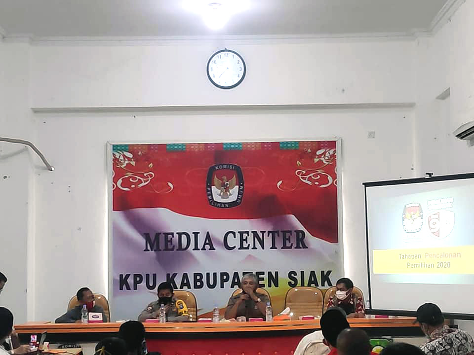 KPU Kabupaten Siak menggelar Rapat Koordinasi dan Sosialisasi Pencalonan di Aula Kantor KPU Kabupaten Siak pada hari Rabu, 29 Juli 2020 yang dihadiri oleh perwakilan masing-masing Partai Politik pengusung pada Pilbup Siak 2020, Kabag Ops Polres Siak, Ketua Bawaslu Kabupaten Siak serta Ketua Divisi Penyelenggaraan KPU Provinsi Riau, Drs. Joni Suhaidi, yang juga bertindak sebagai pembicara utama pada kegiatan dimaksud.