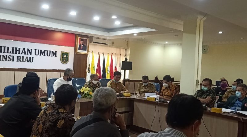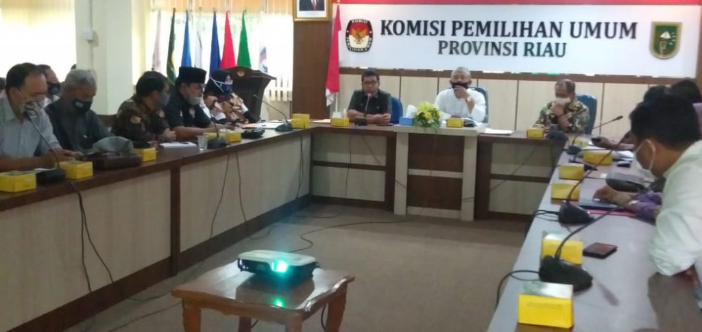 Ketua KPU Kabupaten Siak, Ahmad Rizal, Ketua Divisi Penyelenggaraan, Agus Haryanto, dan Sekretaris, Nur Alamsyah Pribadi, mengikuti kegiatan Rapat Koordinasi KPU Kabupaten/Kota se Provinsi Riau bersama Ikatan Dokter Indonesia (IDI) Provinsi Riau, Badan Narkotika Nasional (BNN) Provinsi Riau dan Himpunan Psikologi (HIMPSI) Wilayah Riau pada Selasa (11/08/2020) di Aula Kantor KPU Provinsi Riau.