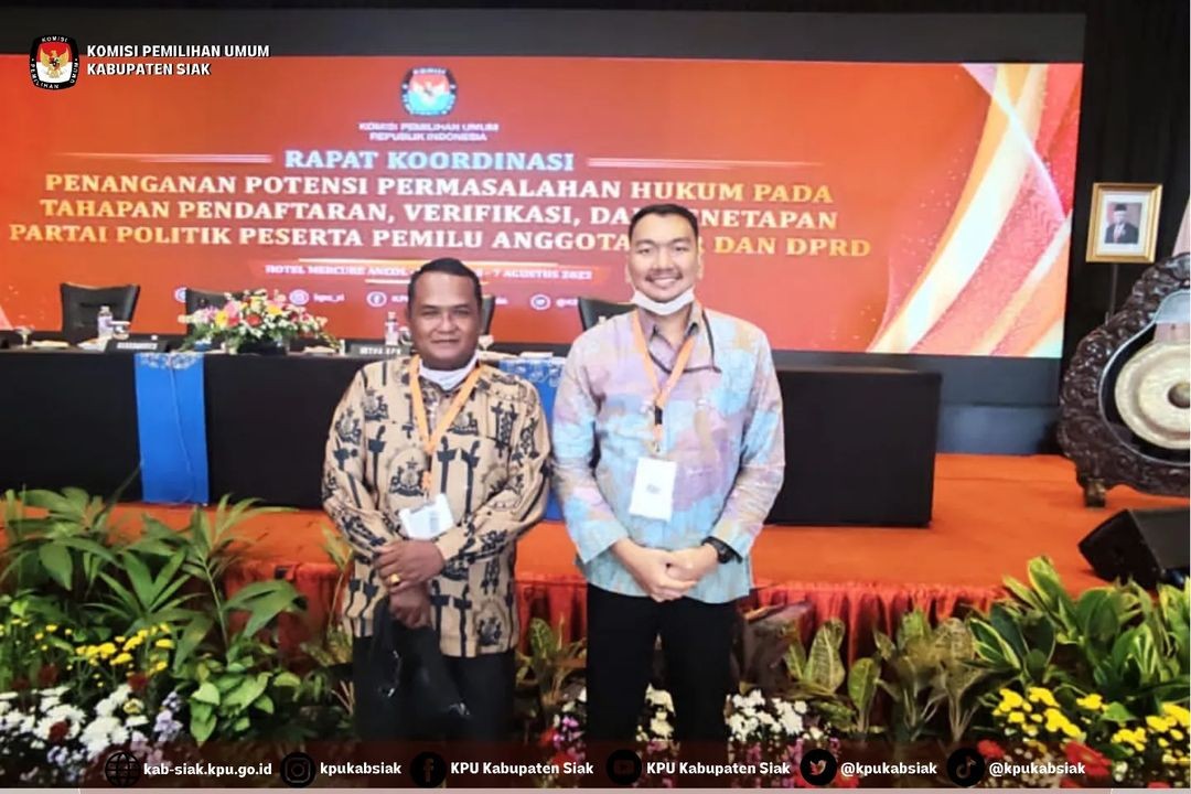 KPU Kabupaten Siak menghadiri Rapat Koordinasi Penanganan Potensi Permasalahan Hukum Pada Tahapan Pendaftaran, Verifikasi, dan Penetapan Partai Politik Peserta Pemilu Anggota DPR dan DPRD, yang diadakan pada Jumat - Minggu (5-7/8/2022) di Jakarta