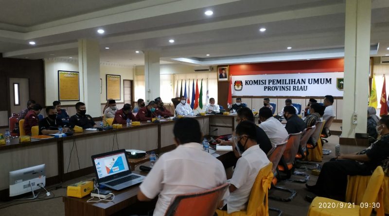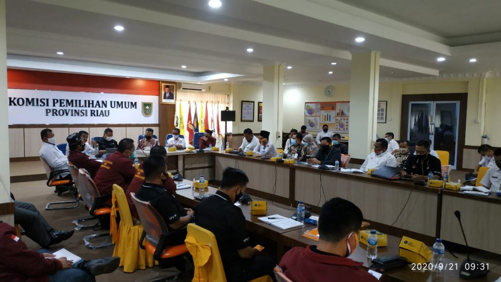 Senin Pagi (21.09.2020), KPU Kabupaten Siak yang diwakili oleh Kordiv Sosialisasi, SDM dan Parmas, Berlian Littaqwa, Kordiv Hukum dan Pengawasan, Susilo, Kasubbag Teknis dan Hupmas, Sukri Ari Yadi serta Operator Dana Kampanye, Wira Kasmadi, mengikuti Rapat Koordinasi Tingkat Provinsi Riau terkait Persiapan Kampanye dan Audit Dana Kampanye pada Pemilihan Bupati dan Wakil Bupati Siak Tahun 2020 di KPU Provinsi Riau, Pekanbaru.