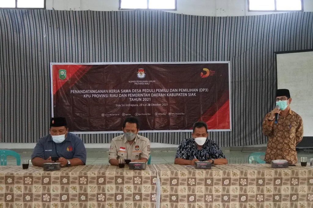 Diskusi kemudian berjalan dua arah dari para narasumber, yang terdiri dari: Anggota KPU Prov Riau, Nugroho Noto Susanto, Anggota Bawaslu Kab Siak, Ahmad Dardiri, dan Plt. Penghulu Mandi Angin, Martinus.Turut hadir para komisioner dan sekretariat KPU Kab Siak.