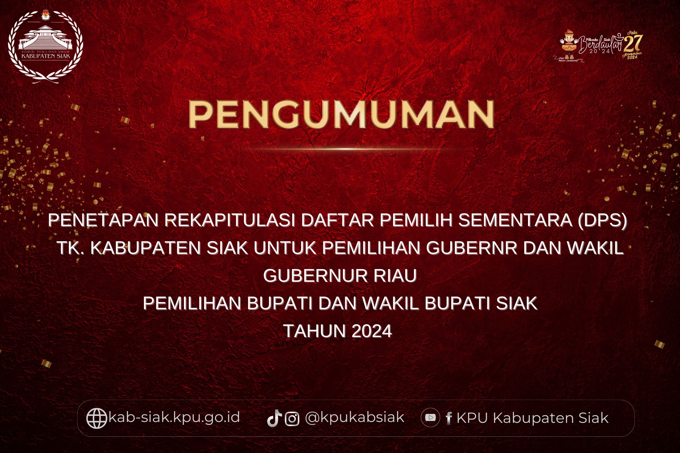 PENETAPAN REKAPITULASI DAFTAR PEMILIH SEMENTARA KABUPATEN SIAK PROVINSI RIAU DALAM PENYELENGGARAAN PEMILIHAN GUBERNUR DAN WAKIL GUBERNUR RIAU PEMILIHAN BUPATI DAN WAKIL BUPATI SIAK TAHUN 2024