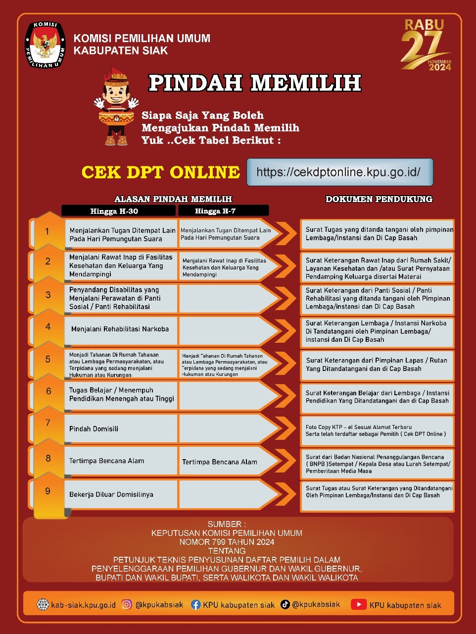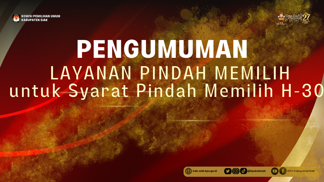 Mendekati Batas Akhir Layanan Pindah Memilih untuk Syarat Pindah Memilih H-30, KPU Kabupaten Siak membuka Layanan Pindah memilih hingga pukul 23.59.