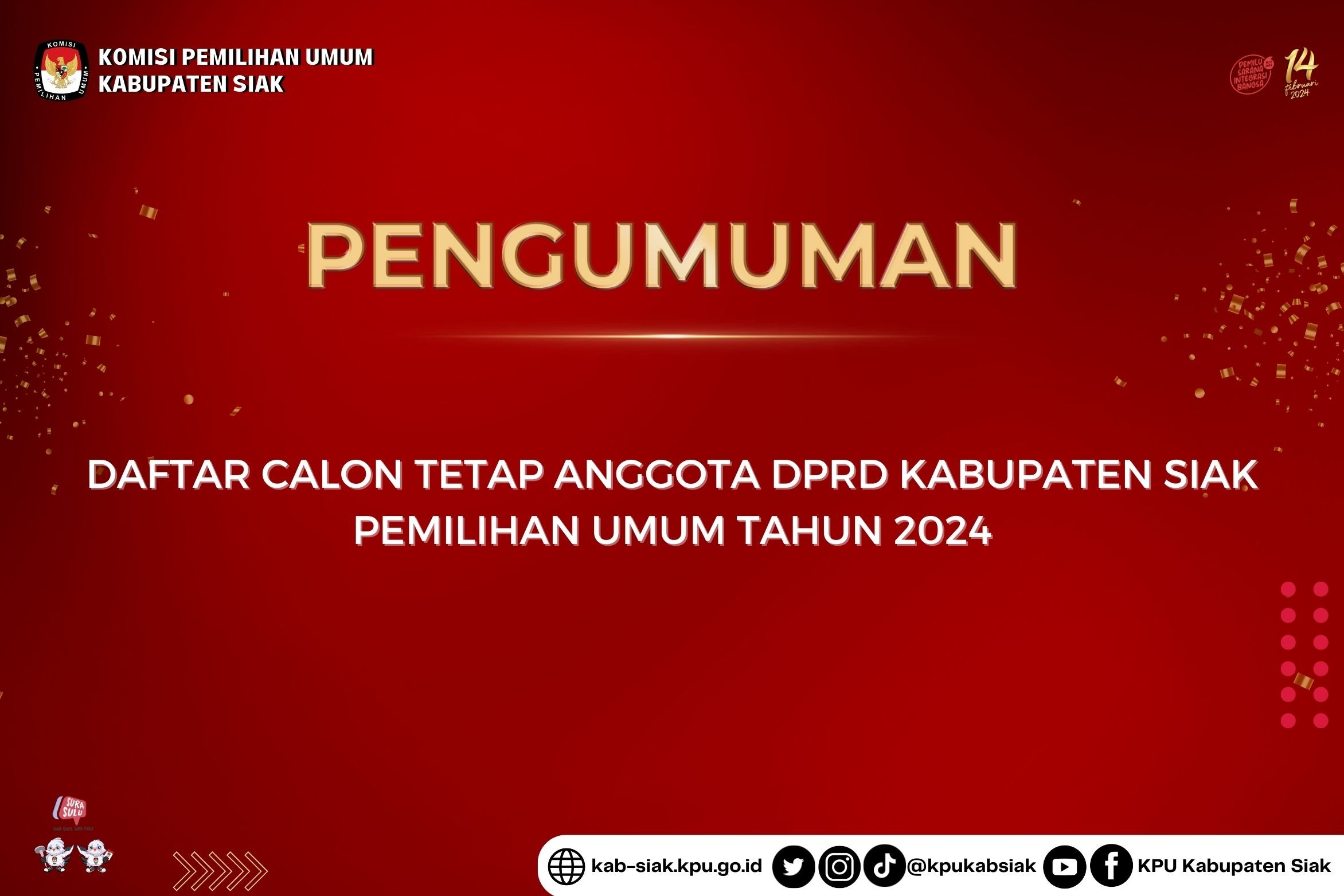 Pengumuman Daftar Calon Tetap Anggota DPRD Kabupaten Siak Pemilihan Umum Tahun 2024