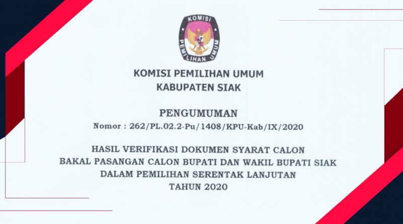 Pengumuman Hasil Verifikasi Dokumen Syarat Calon Bupati dan Wakil Bupati Siak Tahun 2020