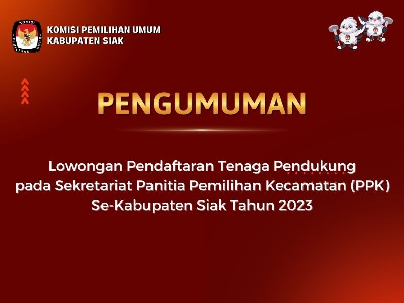 Pengumuman Lowongan Pendaftaran Tenaga Pendukung pada Sekretariat Panitia Pemilihan Kecamatan (PPK) Se-Kabupaten Siak Tahun 2023