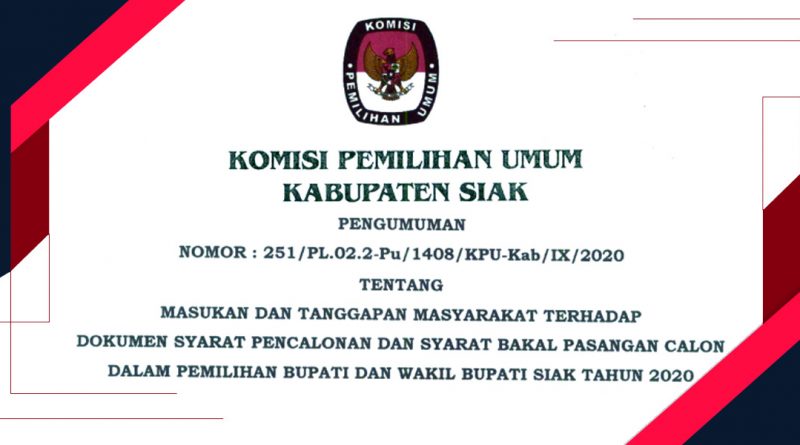 Tentang Masukan dan Tanggapan Masyarakat terhadap Dokumen Syarat Pencalonan dan Syarat Bakal Pasangan Calon dalam Pemilihan Bupati dan Wakil Bupati Siak Tahun 2020
