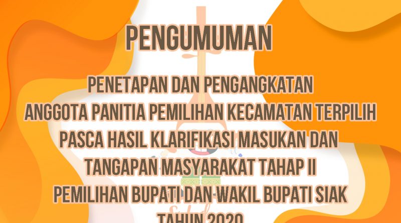 Pengumuman Komisi Pemilihan Umum Kabupaten Siak Nomor: 58/PP.04.2-Pu/1408/KPU-Kab/II/2020 tentang Penetapan dan Pengangkatan Anggota Panitia Pemilihan Kecamatan Terpilih Pasca Hasil Klarifikasi dan Tanggapan Masyarakat Tahap II Pada Pemilihan Bupati dan Wakil Bupati Siak Tahun 2020