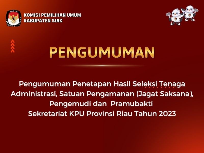 Pengumuman Penetapan Hasil Seleksi Tenaga Administrasi, Satuan Pengamanan (Jagat Saksana), Pengemudi dan Pramubakti Sekretariat KPU Provinsi Riau Tahun 2023