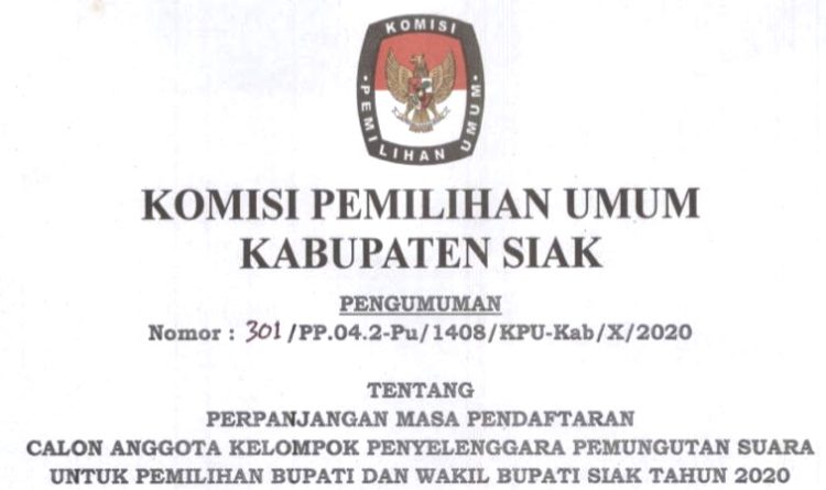Tentang Perpanjangan Masa Pendaftaran Calon Anggota Kelompok Penyelenggara Pemungutan Suara untuk Pemilihan Bupati dan Wakil Bupati Siak Tahun 2020