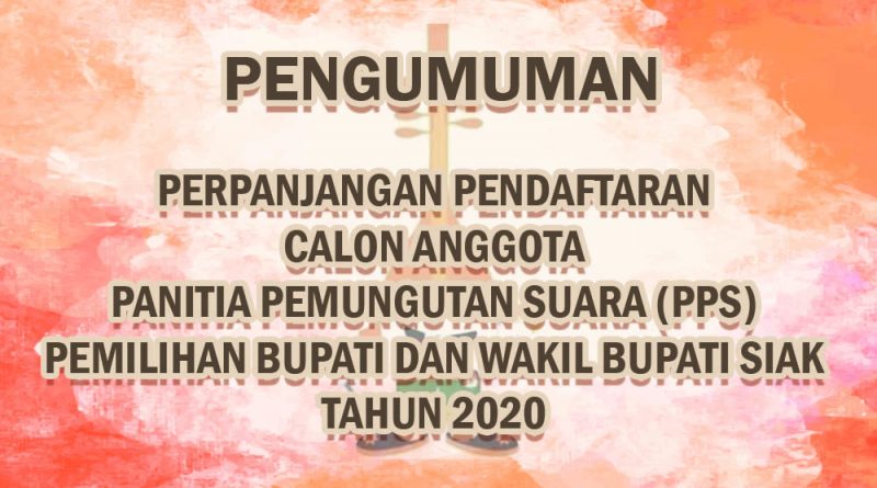 Pengumuman KPU Kabupaten Siak Nomor: 55/PP.04.2.Pu/1408/KPU-Kab/II/2020 Tentang Perpanjangan Pendaftaran Calon Anggota Panitia Pemungutan Suara (PPS) Pada Pemilihan Bupati dan Wakil Bupati Siak Tahun 2020