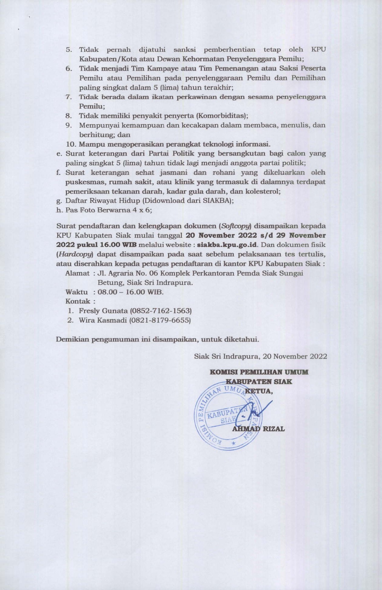Pengumuman Komisi Pemilihan Umum Kabupaten Siak