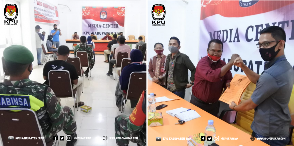 Hadir pada kesempatan ini, Bawaslu Kabupaten Siak, Perwakilan TNI/Polri, Kesbangpol, Liasion Officer dari masing-masing Bapaslon serta rekan-rekan Pers.