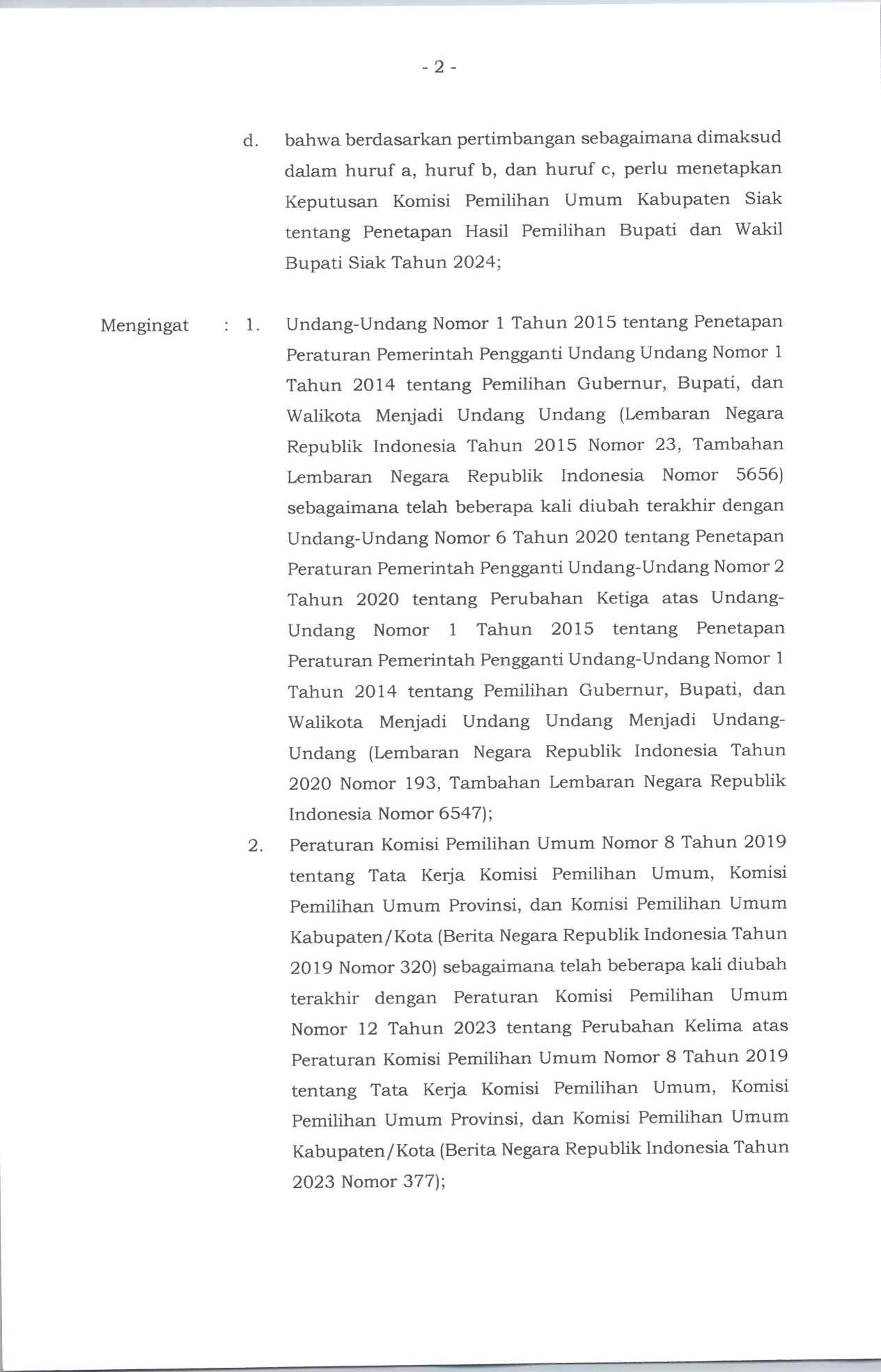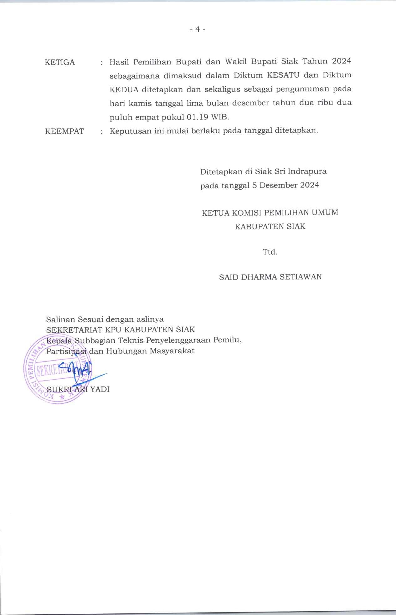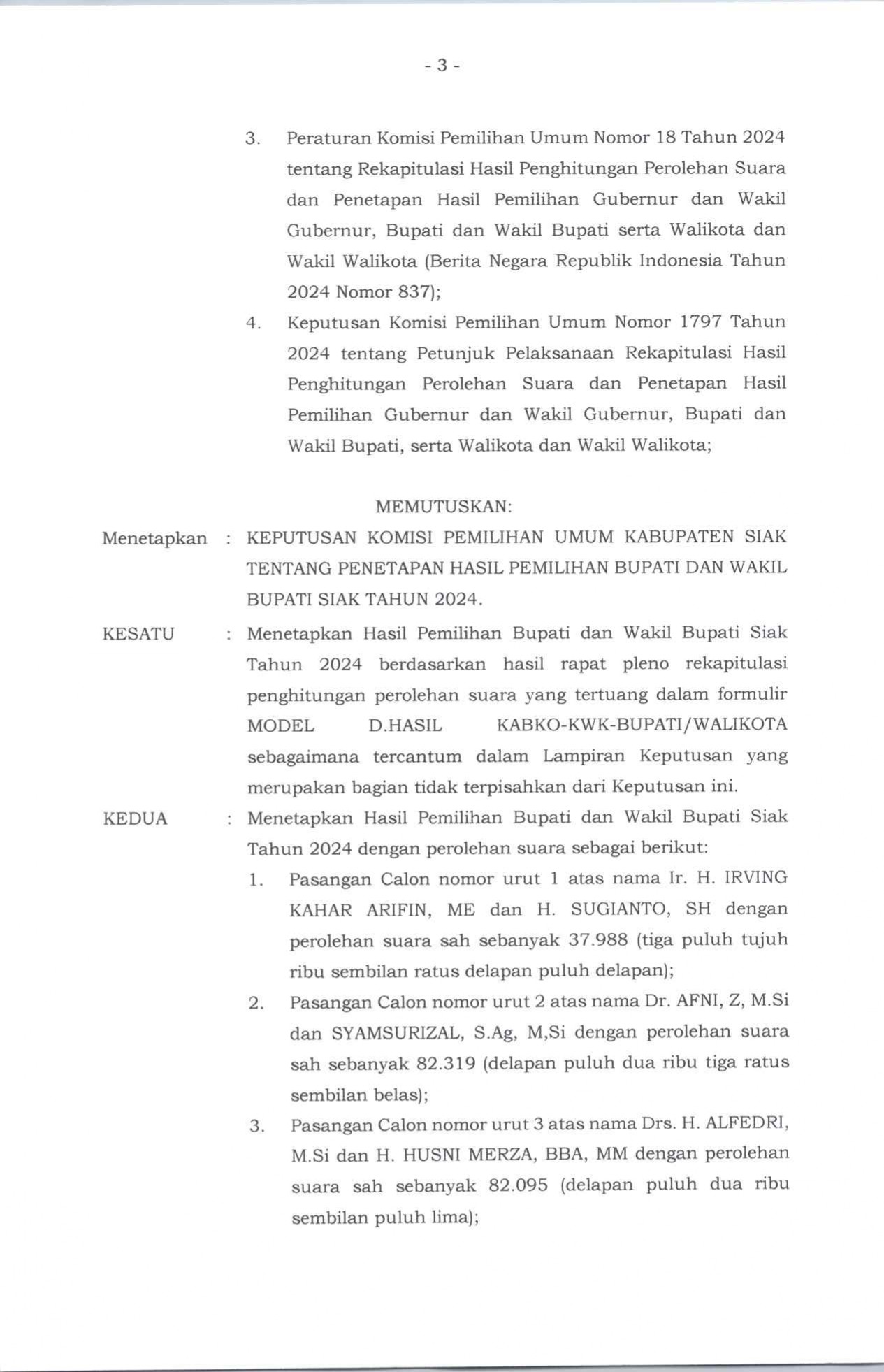 SALINAN SK 1120 TAHUN 2024 TENTANG PENETAPAN HASIL PEMILIHAN BUPATI DAN WAKIL BUPATI SIAK TAHUN 2024 DAPAT DIAKSES DISINI
