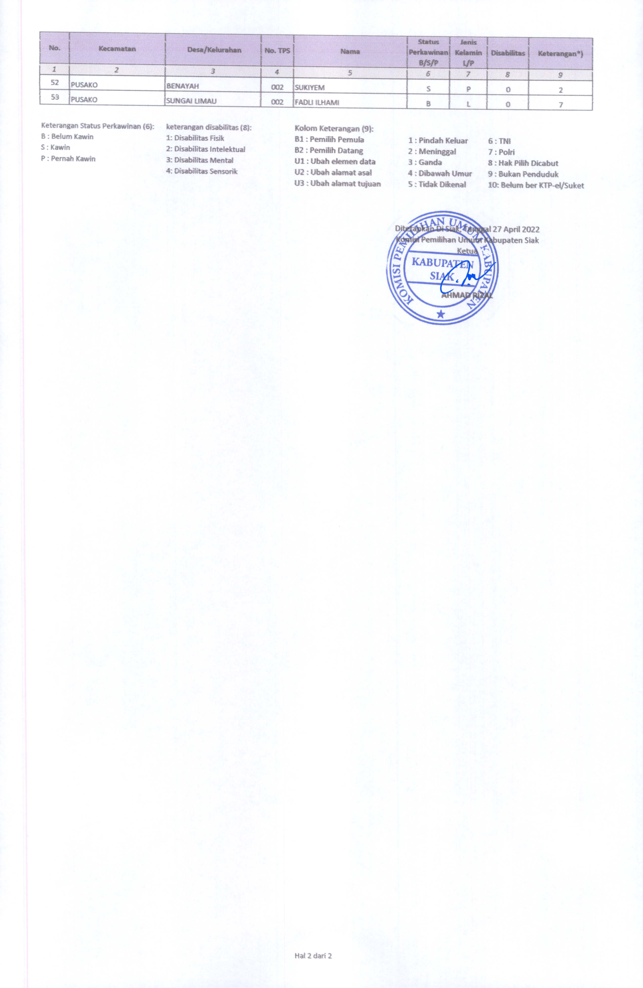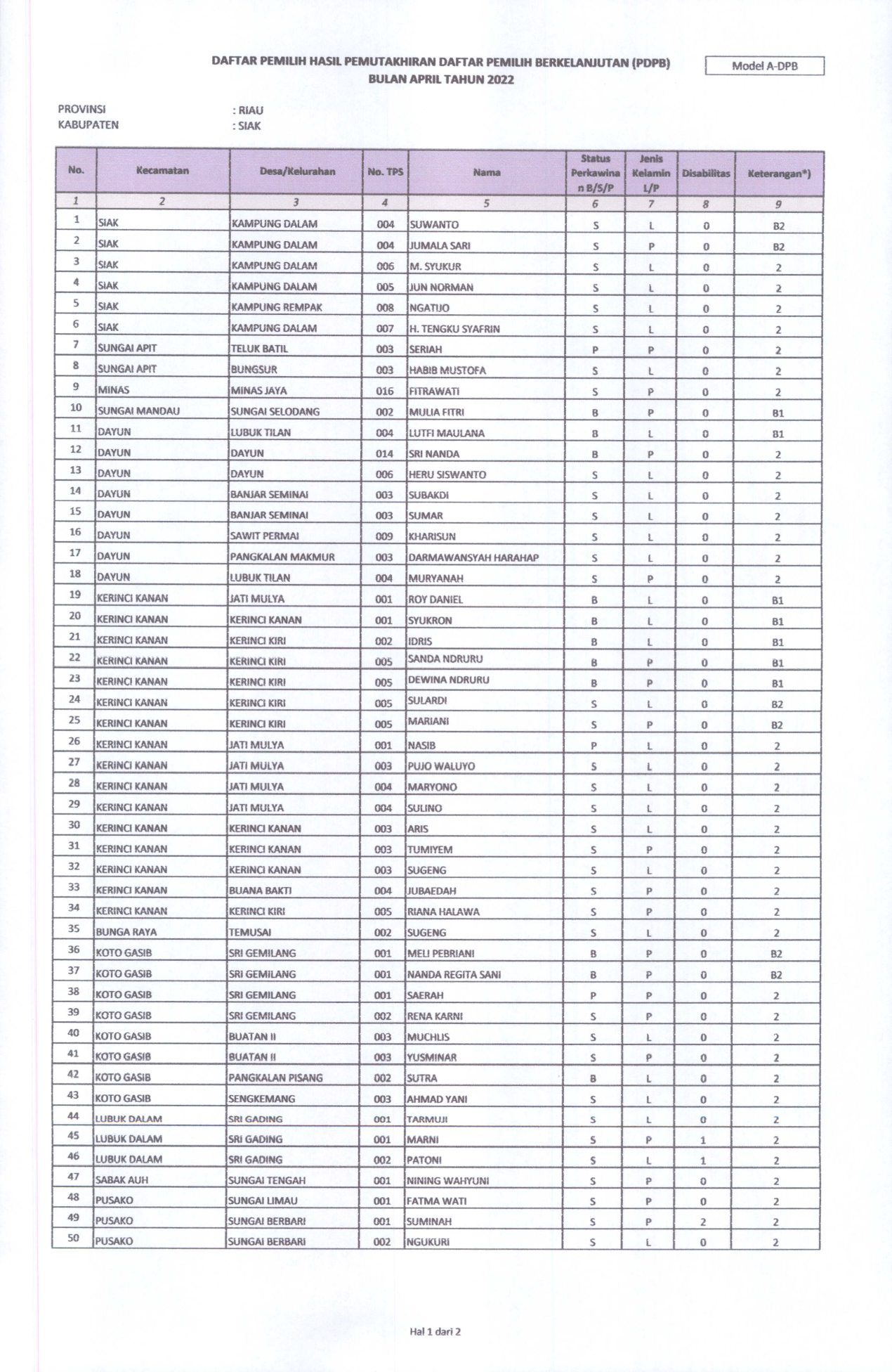 Bagi masyarakat Kabupaten Siak, Silakan cek NIK dan Nama Anda di: