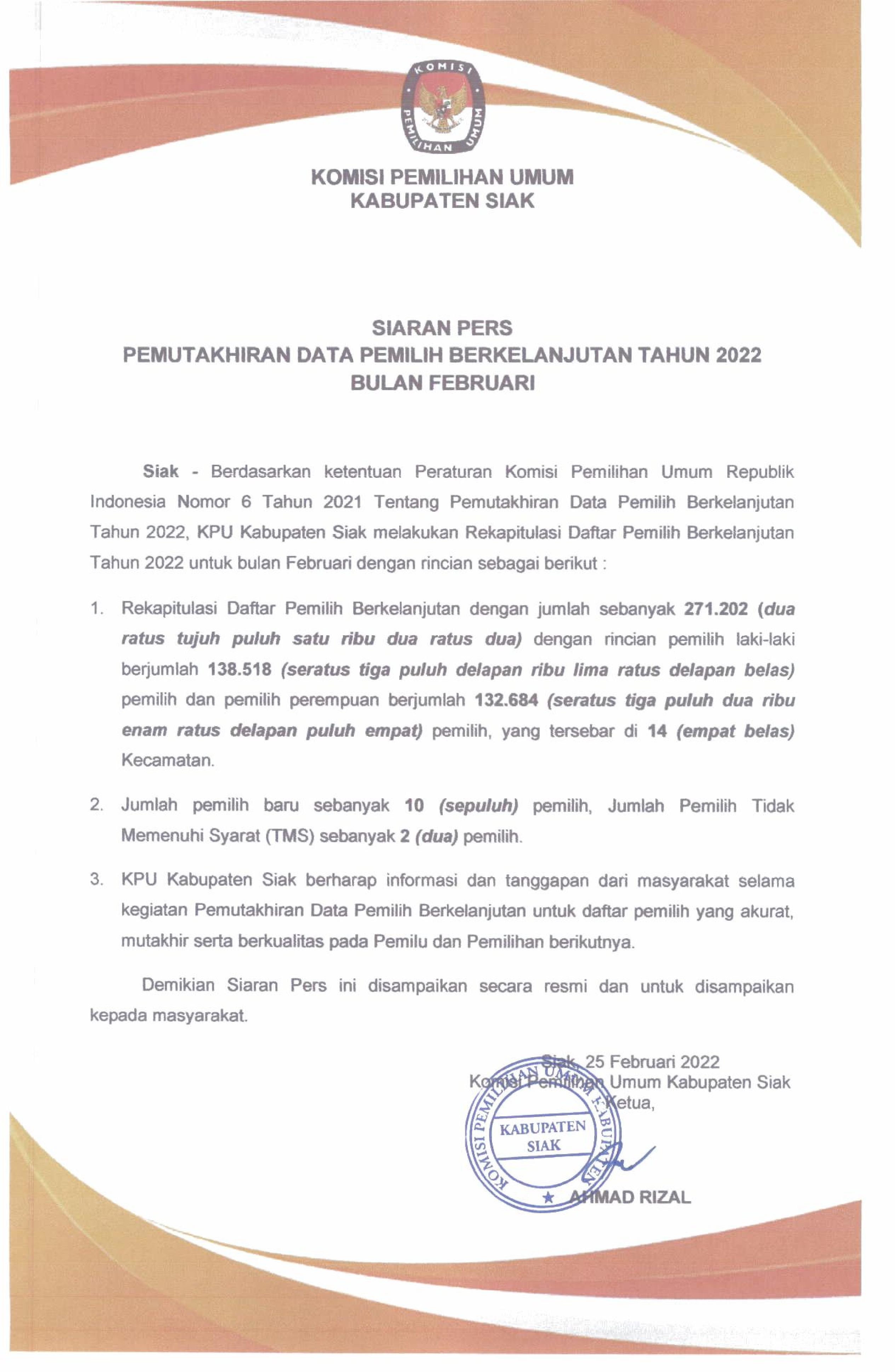 Siaran Pers Rapat Rekapitulasi Daftar Pemilih Berkelanjutan Bulan Februari Tahun 2022
