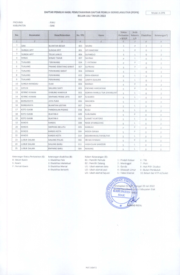 Bagi masyarakat Kabupaten Siak, Silakan cek NIK dan Nama Anda di: