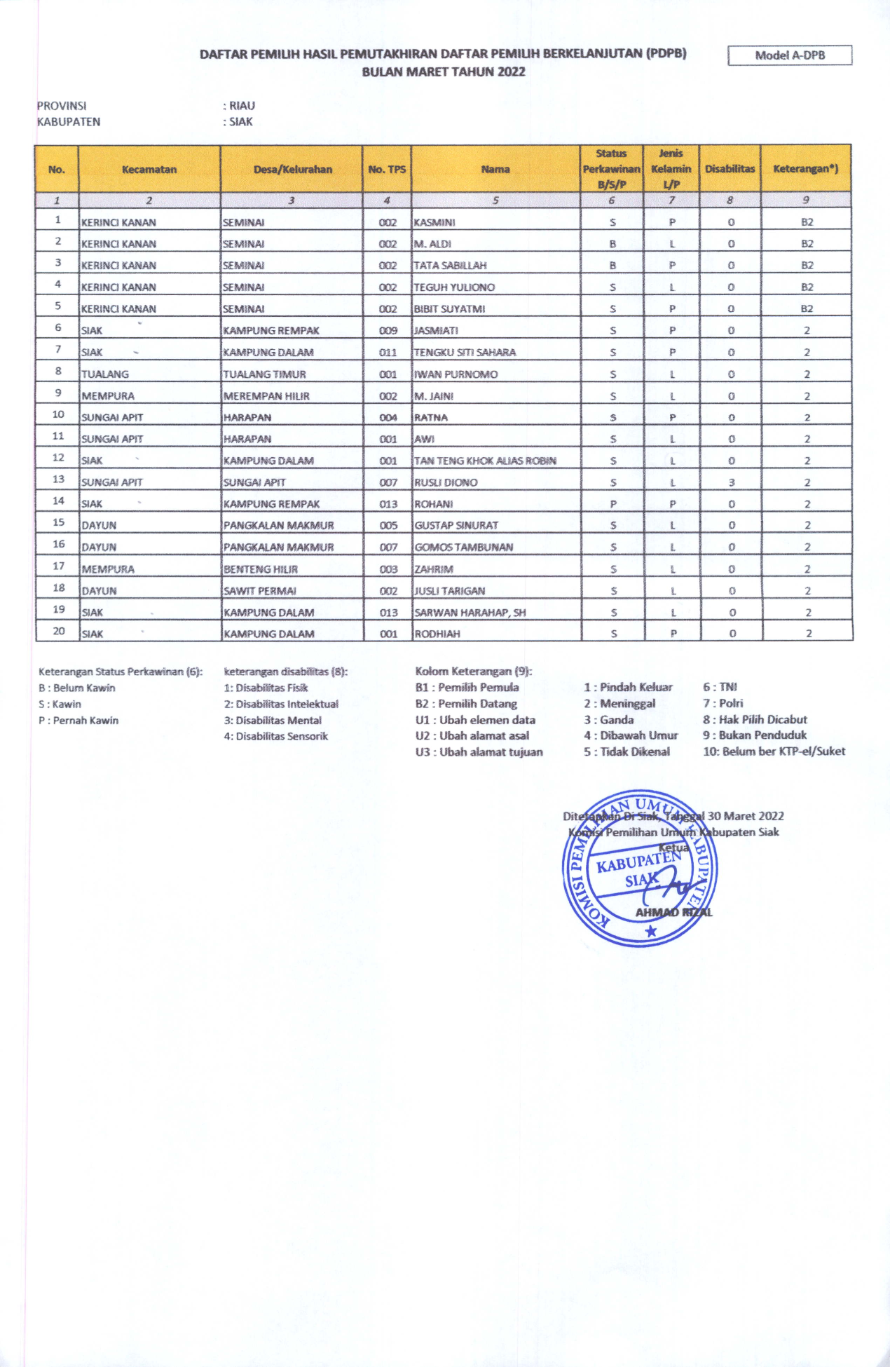 Bagi masyarakat Kabupaten Siak, Silakan cek NIK dan Nama Anda di:
